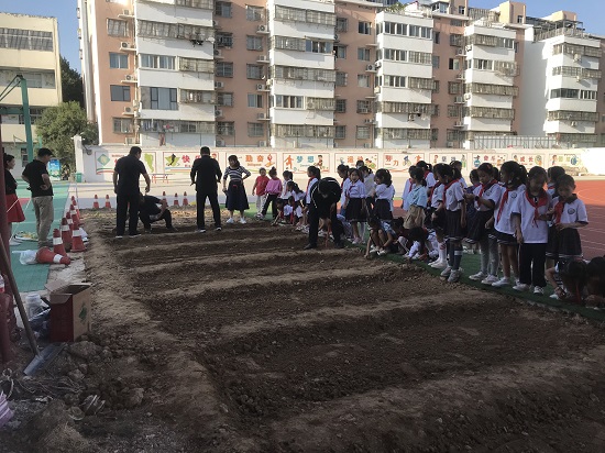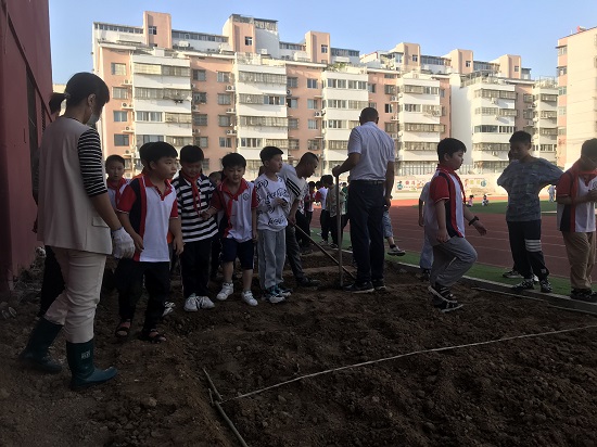 随后,孩子们在班主任的带领下,来到学校实践课教学基地,现场观看了蔬菜研究所同志们施肥、整地、打畦、起垄、播种全过程,并为他们讲解了各个过程的作用。特别是在起垄、踩垄的过程中,孩子们积极踊跃的参加,现场气氛热烈。当他们看到播种的小小的种子能长成各种蔬菜时,纷纷感叹生命的神奇。