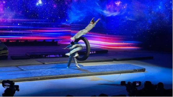 当晚,在中国杂技大联欢的演出现场,由河南省杂技集团有限公司精心创作演出的《扬帆逐风》甫一登台,便以其别具一格的魅力惊艳四座、震撼全场。现场的杂技演员们个个精神抖擞、斗志昂扬,全身心投入,将杂技艺术所独有的“高、难、惊、险”特质展现得淋漓尽致,力求为观众打造一场无与伦比的震撼视觉盛宴。