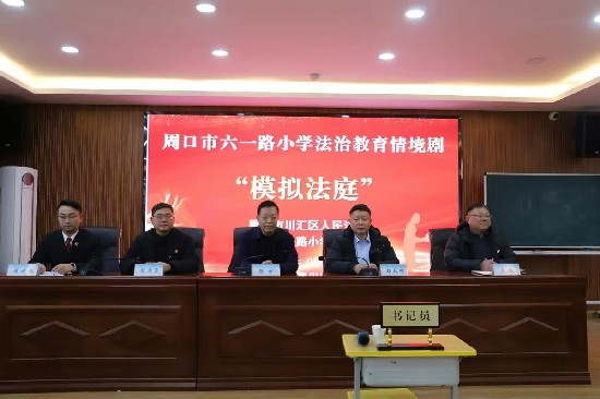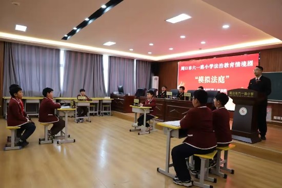 1月28日下午,周口市六一路小学教育集团六一校区内,一场特殊的“庭审”正在上演。川汇区人民法院的法官们将法庭“搬”进校园,通过一场生动的情景剧式“模拟法庭”,为同学们带来了一堂沉浸式法治教育课。