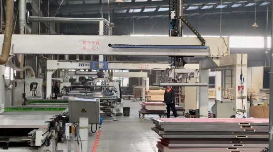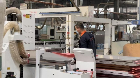 在盛峰木业生产车间内,工人们精神饱满,干劲十足,熟练且有序地操作着设备,车间内一派热火朝天的繁忙景象,彰显出企业抢抓生产、争分夺秒的决心。
