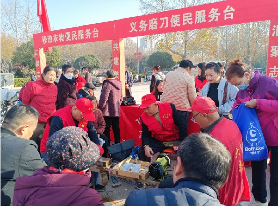活动现场,义诊、义剪、磨刀、缝补修鞋、配钥匙、清洗锅具等十余个服务摊位整齐排列,形成一条温暖的“民生服务线”。尽管寒意渐浓,但志愿者们的热情服务和居民们的积极参与,让整个广场洋溢着暖意。医护人员耐心为居民测量血压、血糖,提供健康指导;理发师根据群众需求,精心修剪出利落发型;磨刀师傅手法娴熟,让钝刀重现锋利;缝补修鞋志愿者飞针走线,快速修复衣物和鞋具;配钥匙、清洗锅具等便民服务也备受青睐,真正实现了“小服务”解决“大需求”。