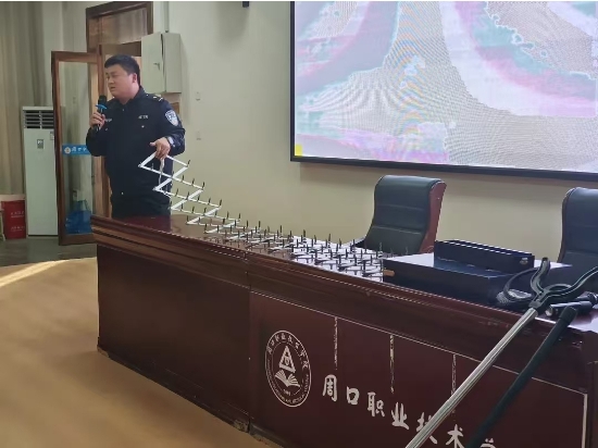 培训内容主要包括反恐防暴器材使用技巧讲解、反恐防暴前期防范技能培训、反恐防暴处置技能培训等三个方面。培训会上,政保大队民警对阻车器、防刺服、防爆盾牌等反恐器材的使用方法、适用情形进行了逐一讲解;警员结合案例,深入浅出讲解反恐形势、应对方法与自救常识,还现场演示防暴器械使用技巧,对处置配合技巧进行培训讲解;最后,强调了演练的重要意义,提出演练要求,师生专注聆听,在实操中掌握了反恐技能。