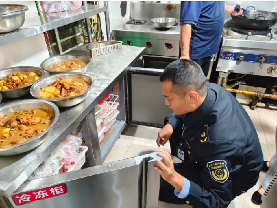 在食品安全方面,执法人员紧盯节日消费热点,对农贸市场、大型商超、餐饮单位及月饼生产企业开展重点检查。严格核查食品进货查验记录与索证索票情况,排查生鲜肉类、散装食品及节日礼盒的生产日期与储存条件,把好“入口关”。同时深入餐饮后厨,检查卫生环境、餐具消毒等环节,对存在问题的商户现场下达责令改正通知书,坚决杜绝“问题食品”流入市场。