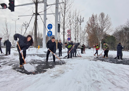 街道主要领导带队,组织机关干部、社区工作人员、党员志愿者、环卫工人,并动员辖区物业单位及商户共同参与,按照“先主后次、先通后清”的原则,对主干道、背街小巷、居民区出入口等重点区域积雪积冰进行集中清理。同时调配铲车、融雪剂等设备物资,及时处理结冰路段,确保道路安全通畅。